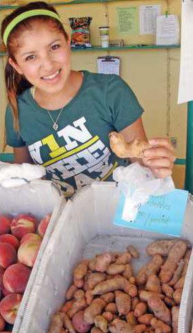 The Escalon teen not only enjoys having this small, stubby, finger-shaped type of potato mixed in with her favorite dish, but, as a summer job, she also sells the yellow-skinned variety at Fisher Farm along Highway 120.