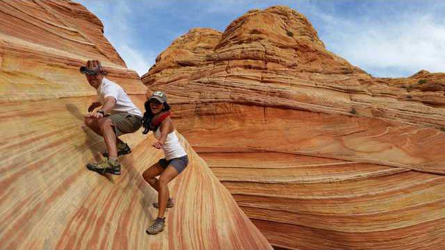 FLAGSTAFF, Ariz. (AP) — A geological gem awaits hikers in the wilderness along the Arizona-Utah border. Swirls of searing reds, oranges and yellow fold into a bowl that visitors from around the world seek out on an unmarked path past sandstone buttes and sage brush. It’s said to be one of the most photographed spots in North America, but The Wave in the Vermilion Cliffs National Monument isn’t without dangers.