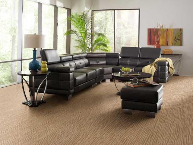“New soft fibers,” says Vickie Gilstrap, director of design services for The Dixie Group, a top U.S. carpet manufacturer. “Consumers went away from wall-to-wall carpet, as hard surface flooring gained in popularity. Then, people began to miss the softness and warmth of carpet. Carpet absorbs sound, making homes quieter, and traps dust at the base of the carpet fibers so that dust doesn’t circulate in the room air.- The soft fibers give us a reason to put carpet down again.”