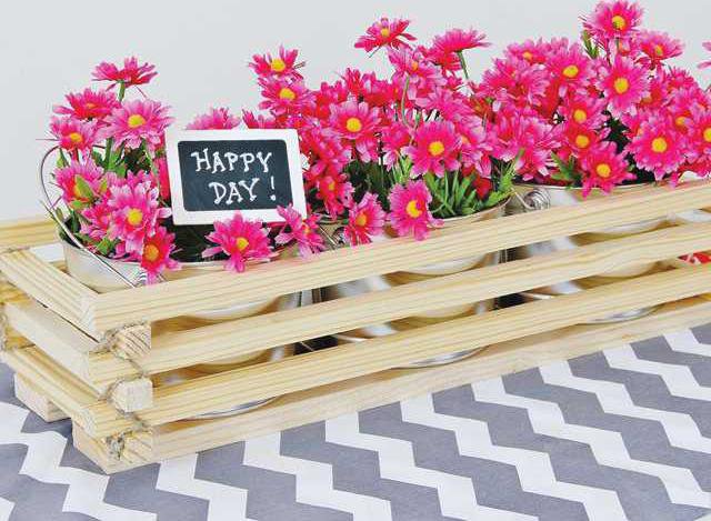 Lay the two pine boards flat and place two of the 9 inch trim sections perpendicular to the boards to form a rectangle. Leave approximately an inch of trim hanging over the boards at the corners. Stack the rest of the pieces like building blocks, alternating between two 9 inch pieces and two 24 inch pieces. Use Krazy Glue to bond the pieces at the corners instantly. Wrap jute twine around the corners of the box and glue the ends down. Place three 7 to 8 inch diameter galvanized pail planters inside it for a very on-trend mixed materials look or just use it to hide those flimsy, plastic planters you have lying around.