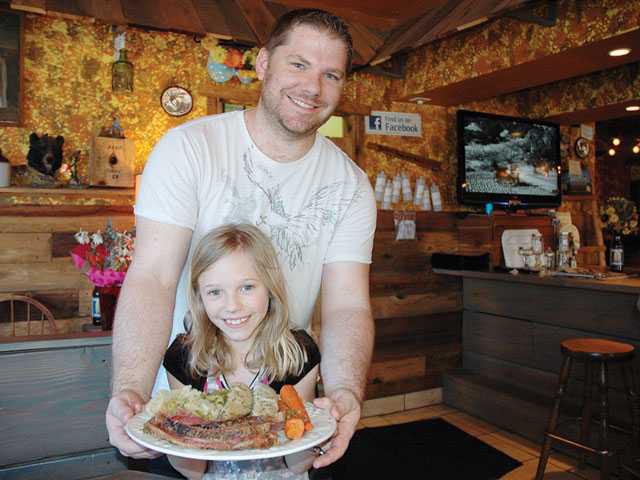 Hillbillie serves its corned beef and cabbage meal all day – lunch through dinner. It serves a very generous portion of three thick slabs of tender and juicy beef served with equally scrumptious baked potato and a pile of cabbage. If you so desire, you can have a choice of any of Hillbillie’s nine sauces, all original concoctions by the family that owns the barbecue restaurant. That’s Brenda Pine, and her daughter and son-in-law, Stefine and David Thomason. The sauces are actually from the recipes created by Pine’s husband, David, who is an award-winning cook. She is the creative brain behind the restaurant’s rustic décor. You can enjoy the generous serving of corned beef and cabbage along with beer, wine or soda if you prefer.