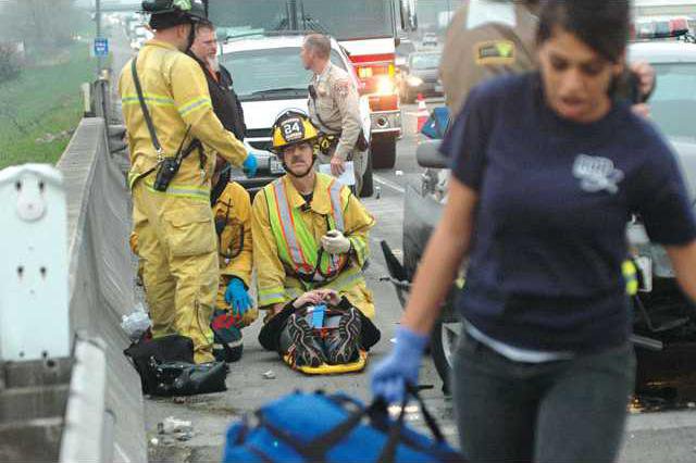 A red Pontiac Grand Am driven by Patricia Clemens, 43, of Modesto had been distracted by a child in her back seat as traffic slowed in front of her, according to a CHP officer on the scene.