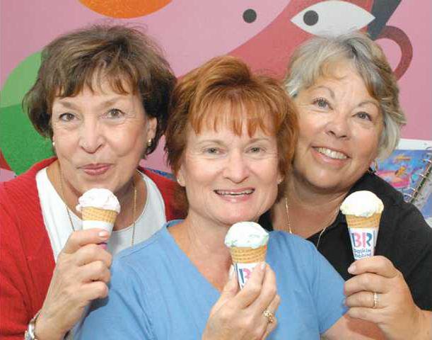 Pat Krueger, Bonnie Pater and Michelle Bartels sampled the ice cream reward of a “Pint for a Pint” at the Wilma Avenue Baskin Robbin ice cream shop Monday morning. Each blood donor will be given a coupon for a pint of hand-packed ice cream where the shop owner is openly urging her customers to remember to give blood.