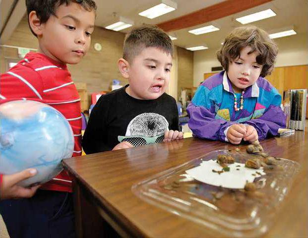 Getting a closer look at live snails are, from left, Dominik Villanueva, Christopher Wiggney, and Aaliah Villanueva. It was part of the Earth Day activities Wednesday at the Manteca Library.