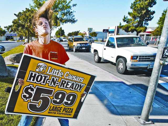 A-frame and flag signs would have to be placed in such a manner as to allow four feet of sidewalk to remain open plus be set a foot back from the curb. Often times signs – such as one often placed by Del Taco at Yosemite and Spreckels - are placed in the middle of the sidewalk leaving less than four feet on either side.