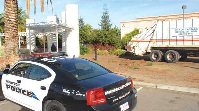 Manteca officers Kirk Doty and Bill Walmer rousted a Manteca transient out of her camp tent about 10 a.m. Monday from the dumpster enclosure used by the Staples store on East Yosemite Avenue. The woman told officers that she had been staying there with her male friend where they spread plastic covering across the overhead chain link fencing.