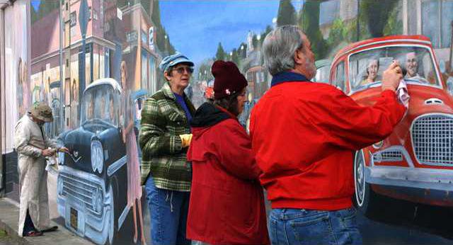 Society President Norm Knodt said that the “Cruising” mural alone represented a $50,000 price tag in addition to the “Crown of the Sierras” depicting Yosemite National Park and the “Pitching Pumpkins” art work, both in the 100 block of North Main Street.