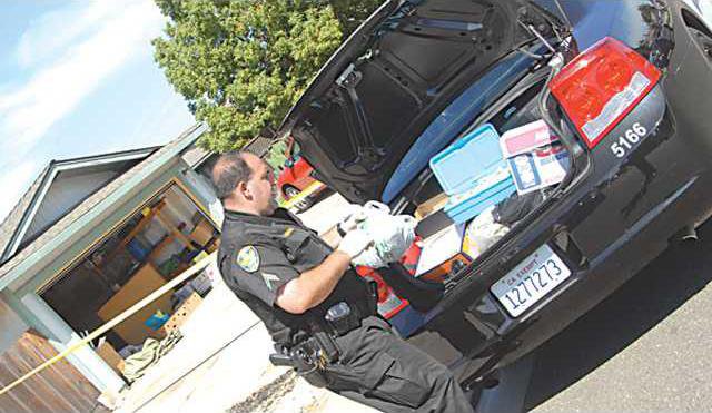 As officers unraveled yellow crime tape around the scene, because of the deceased inside – not immediately knowing the cause of death – other officers began to search the garage of the home.