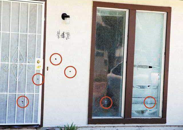 The apartment, believed to be the residence of a gang member, was occupied by a woman and a young daughter – both sleeping at the time—who were uninjured in the assault, police said. Bullet holes could be seen Wednesday near the door and into a front window. Detectives were investigating the scene at 2:30 Wednesday afternoon with the window scheduled to be replaced at 3 p.m.