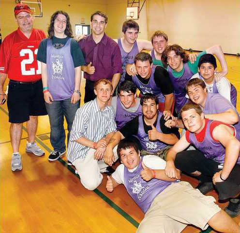 The Manteca DeMolay team celebrates their dodge ball win over Castro Valley DeMolay on Sunday. It was part of the DeMolay games featuring basketball, dodge ball, and Ultimate Frisbee conducted at Sierra High involving DeMolay chapters from throughout California.