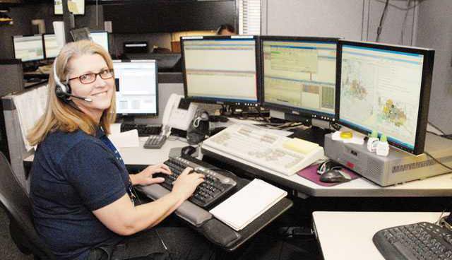 Senior police dispatcher Kim Thomas joined the department in 1992 and is now working day shift. She said she didn’t have a passion for the job when she started 19 years ago adding, “I do like what I do.”