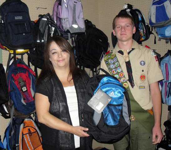 They’ll select a backpack from one wall and fill it with various school supplies from any of the two storage units.