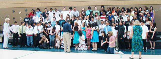 Mr. Shima, Mr. Mackey, and Mr. Lum, 8th-grade staff, presented awards to Ines Sosa, Brandon Bonalos, Jessica Denning, Maria Almanza, and Vanessa Valdez. Each received awards for their 4.0 GPA status and Presidential Achievement.