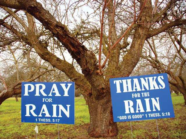 In the summer, with California in the throes of a record-setting drought, the sign that popped up all over the farming areas in and around Manteca caught a bit of attention with the message: “Pray for Rain.”
