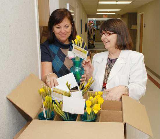 Doctors’ staff members Kathy McKenzie and Debbie Aventi delivered the flowers, vases and small Teddy Bears throughout the hospital. Those items ordered over the Internet were delivered by UPS.