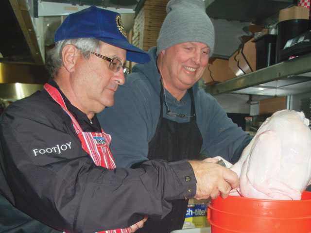 John Brennan, of Roadrunner Glass, typically shows up with his entire family to help serve the meal, and Rob Gross and his family gave up their night before Thanksgiving last year by seasoning all of the turkeys just before they went into the oven and placed each of them into a cooking bag.