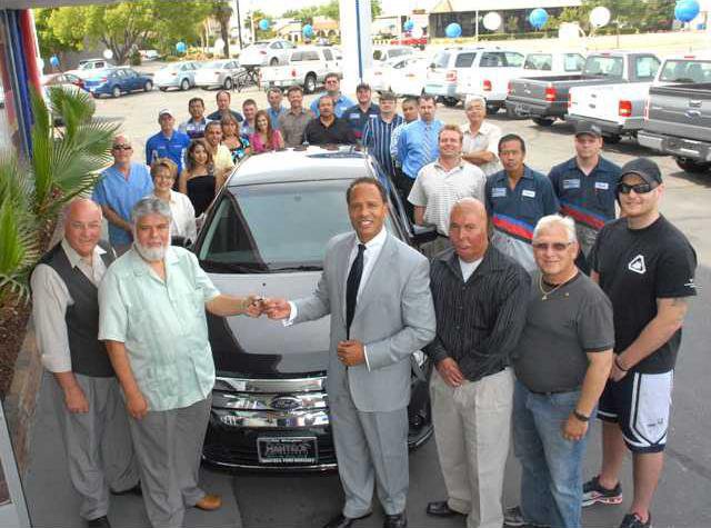 “When God puts something heavy in your heart you get things done,” Manteca Ford dealership owner Phil Waterford told a group of his employees as he stood in front of his business giving away a 2010 Ford Fusion and $3,000 in cash.