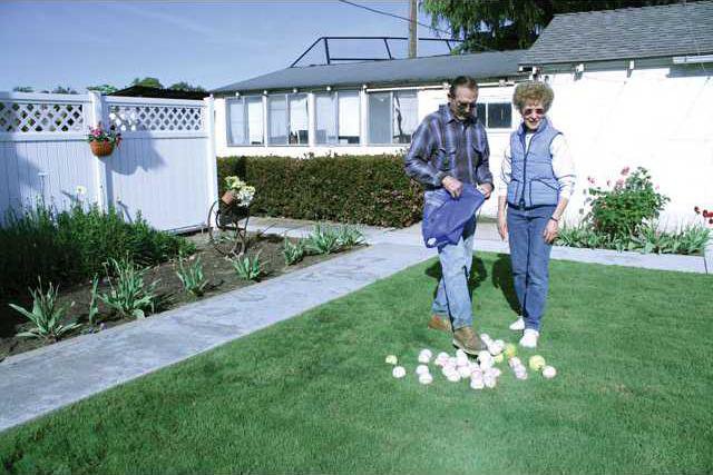 Irvine Wilson shared his collection with members of the City Council at their meeting Monday night. He carried his haul in a royal blue bag, depositing it dramatically on the podium as he asked city officials to “do something about the foul balls falling all over my back yard.” Some are even landing on the aluminum roof of an enclosed structure in the back of the house, he said. The white-washed house with well-tended gardens all around was built by his late in-laws, Charley and June Percival, with their own hands back in the 1960s.