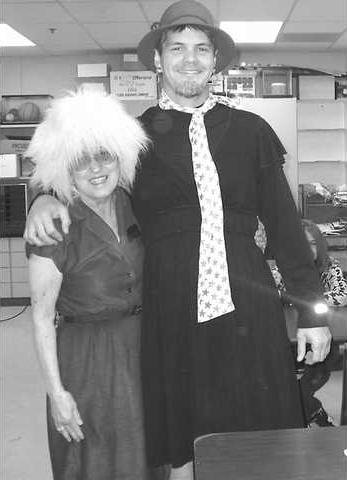 His wardrobe was nothing outlandish. Bilbao indicated that his wife dug up the simple black dress while one of his fellow teachers brought him a hat. Myrick provided the earrings.