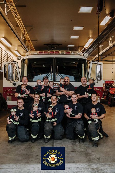On Tuesday, the department posted a photo of nine personnel that have welcomed new children into their family – and the wider Manteca Fire Department family – within the last year that quickly went viral on social media.