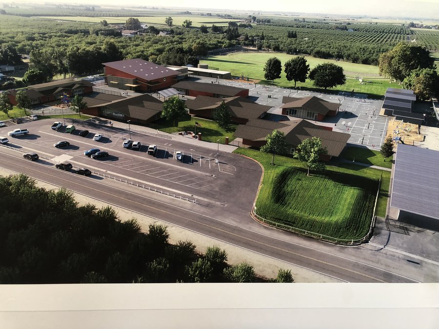 A new school bus drop off area will be built along the eastern edge of the campus. Currently the bus drop off zone is in the area of the main parking lot. The congestion forces a number of people to drop their children off by parking across the street at the edge of an orchard along Nile Avenue that is now a narrow country road.