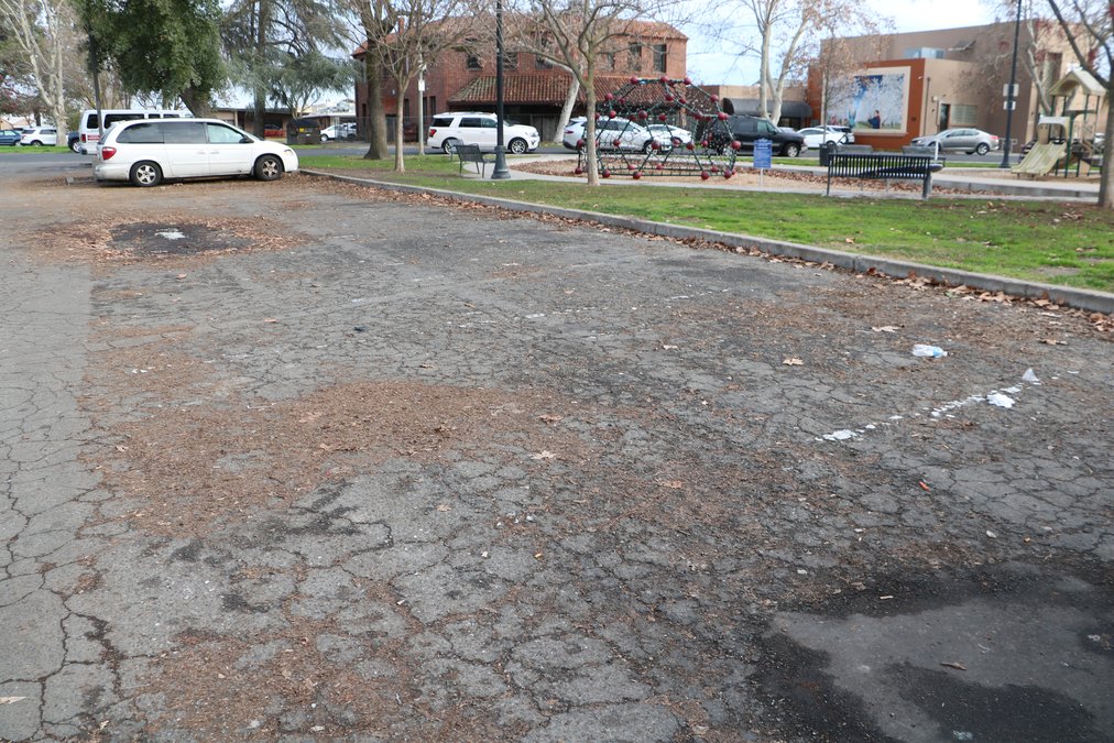 The crack up known as the Library Park parking lot will soon be no more.The Manteca City Council Tuesday approved mid-year budget adjustments including tapping into $200,000 in development mitigation fees to repave the parking lot that’s riddled with cracking asphalt, depressed pavement, and large potholes that have to be routinely filled.