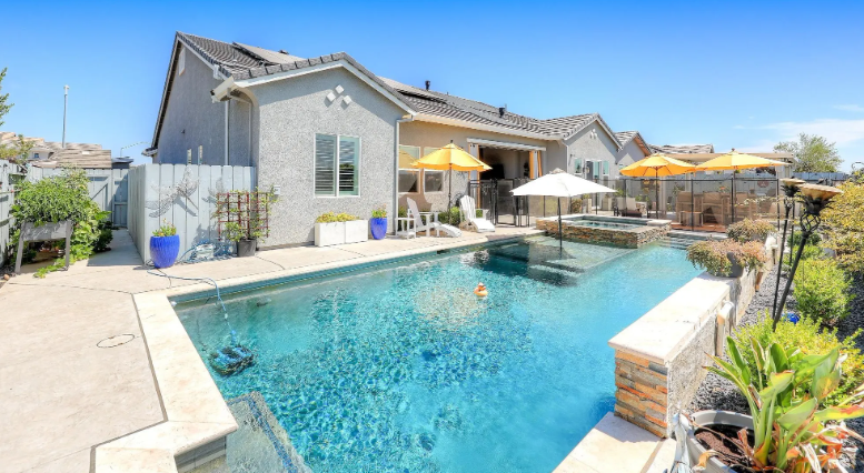 The home with four bedrooms, 3.5 bathrooms and a swimming pool first sold 2018 for $597,000. That’s a $352,000 gain.