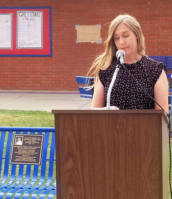 Shortly after his passing in 2021, friends and staff of the Manteca Unified school site remembered him with a bench dedication not too far from the EU counseling center. In attendance that day was his daughter and MUSD teacher Kristin Meeks along with her family.