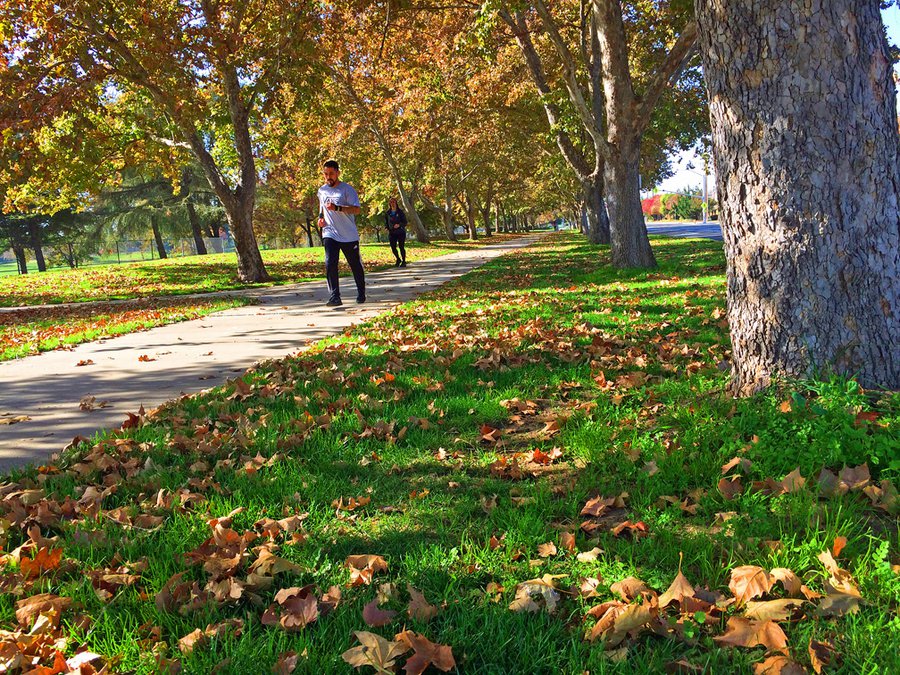 Golden rain and pepper trees around City Hall on West Center trees still retain their colorful leaves this late autumn. The pathway between majestic sycamores at Woodward Park along Woodward Avenue remains a favorite of joggers and avid walkers.