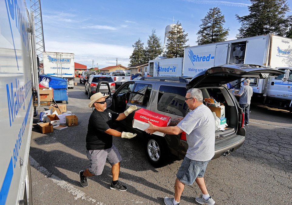 Personal documents will be accepted for shredding that are dropped off in cardboard boxes or plastic bags.