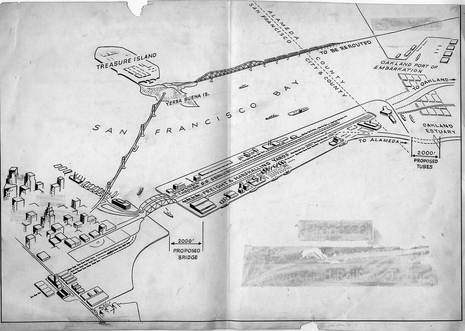 The plan called for a causeway constructed on a giant earthen fill. It was to go from Alameda where it would connect to land via a tunnel before reaching the Oakland estuary to China Basin in San Francisco where the last segment would be via a 2,000-foot-long bridge.