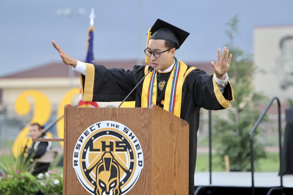 Honor, pride and accomplishment.Those were the words that Chad Hoang used to best describe Lathrop High’s graduation ceremony on Friday.The valedictorian led his classmates in a round of applause to “express our love for ourselves,” he said.Most of the 292 classmates complied by putting their hands together. It was one of many times during this special evening that they came together as one, showing support of a journey that began four years ago.LHS was an “island in the middle of nowhere,” as Hoang called it, that proved to be much nicer from the inside.This was where the community came out to equally show support, with city dignitaries along with the principals from the feeder schools -- Lathrop Elementary (David Silveira), Widmer (Kathy Brown Snyder) and Mossdale (Susan Sanders) -- all in attendance.It was where memories were made. Included was the school’s first-ever Valley Oak League championship in the Spartan girls basketball team.According to ASB President Virly Santos, LHS, since its opening in 2008, had long been considered an underdog.Times are changing.For Greg Leland, the Class of 2018 will always hold a soft spot in his heart. “This is my first graduation as principal,” he said.Leland, who was previously at Sierra High, came to LHS over a year ago as assistant principal.