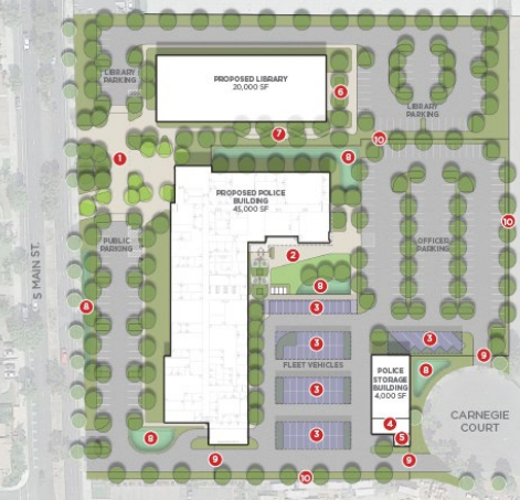 It will either be a new library of a police training center that will eventually join the new police headquarters breaking ground this summer on the southern portion of the 8.07-acre parcel in the 600 block of South Main Street.