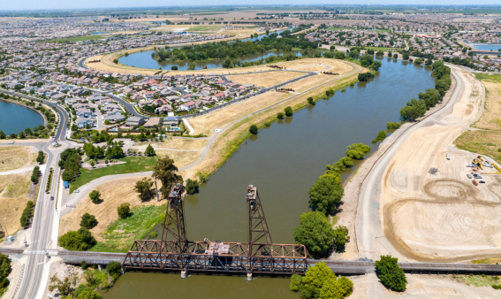 *The first flood walls in the area — concrete structures to hold back water — will be built on either side of Interstate 5’s San Joaquin River crossing due to limited area where the levee can be raised and widened.