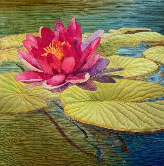 The “Beneath the Surface” wall-hanging quilt was designed by featured artist Sandra Mollon.