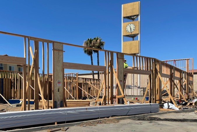 The new building is being built on the southern edge of the property bordering the Holiday Inn Express. It will be next to a cell tower disguised as a clock tower.