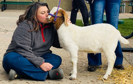 In contrast to Ridoloso, Wooten was overjoyed to win the opportunity to kiss the goat. She sat down next to the goat and leaned willingly into the kiss. Her excitement was derived from a love for animals.