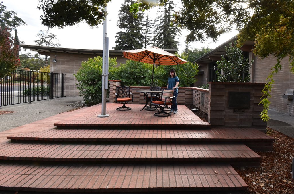 The city after spending thousands of dollars repairing and cleaning up reoccurring damage invested in a decorative wrought iron fence to secure the courtyard. The Friends of the Manteca Library added chairs as well as tables with umbrellas while the Manteca Garden Club upgraded the landscaping to make the area inviting for patrons wishing to enjoy good weather while reading a book.