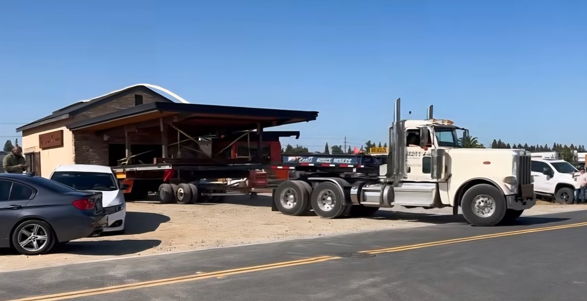 The structure of the popular Modesto restaurant – formerly on Dale Road – was taken apart in sections and loaded onto trucks during its move to River Islands, specifically, near Islanders Field.