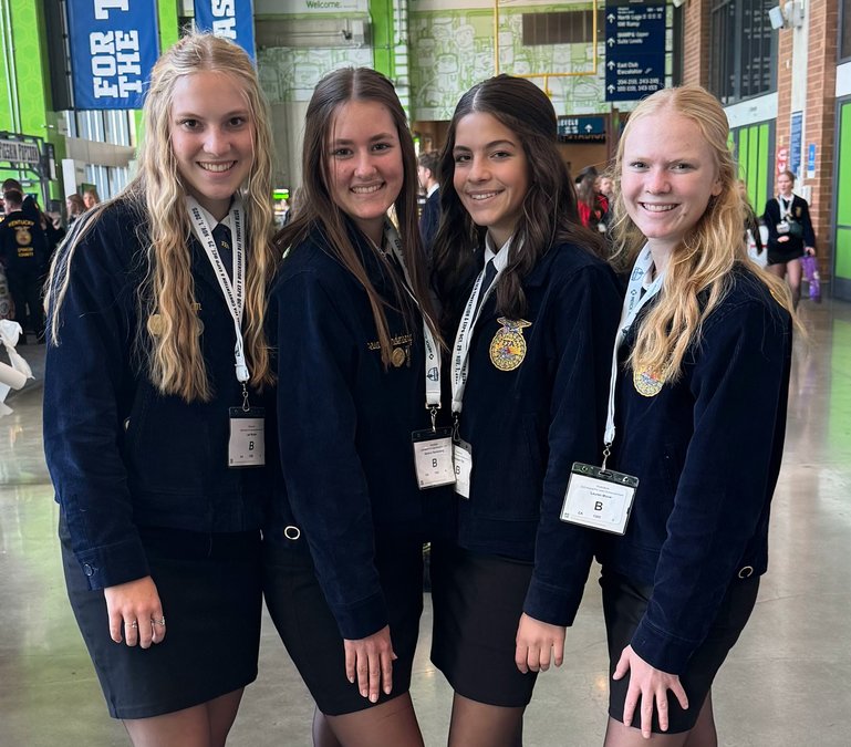 The local team consisting of Laci Nydam, Geneva Vandenberg, Gracelyn Dyk and Lauren Mouw, representing California, reached the CDE finals in Indianapolis – one of 47 states in the competition – and came away as National Champions.