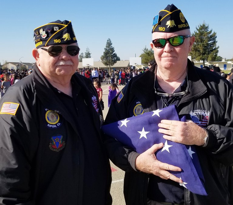 American Legion Post 190 and Veterans of Foreign Wars Post 1051, both from Ripon – included were Ernie Tyhurst, Marcus Whitfield and Ken Lawson – took part in the Great Valley Veterans Day observation consisting of color guards and an emotional flag-folding ceremony.