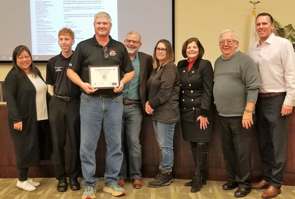 “Peers have recognized Rod for his commitment to your school and community,” said CSADA Awards Chairman Rick Francis in his Nov. 1 letter to RHS Principal Keith Rangel.