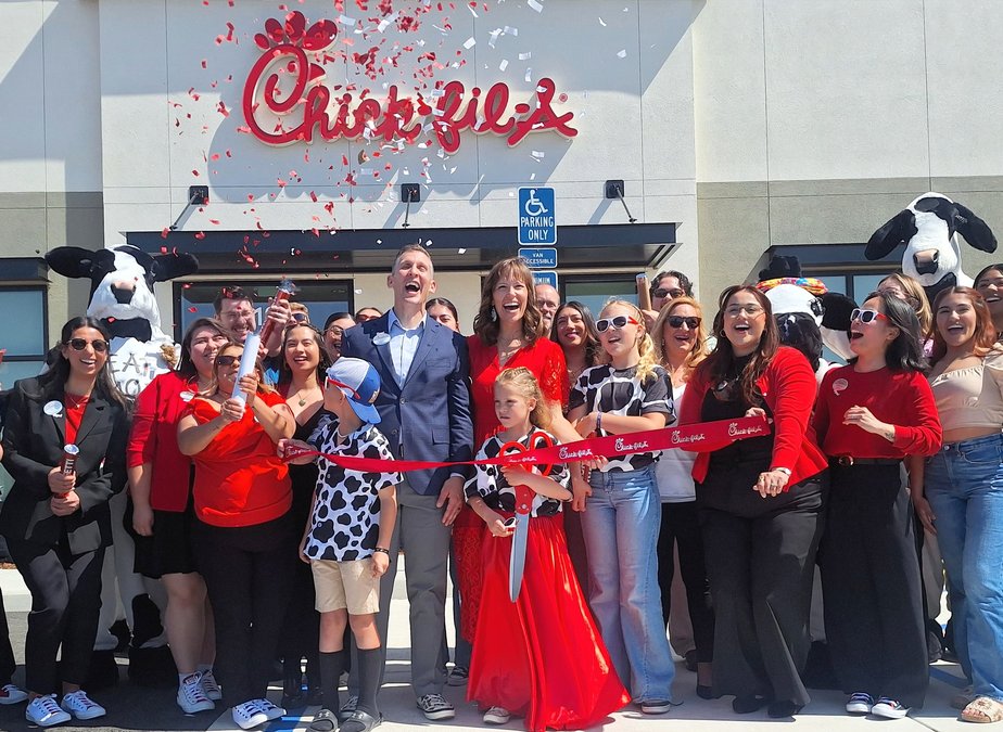 Included were City of Manteca elected leaders and officials, the Manteca Chamber of Commerce, Ripon Chamber of Commerce, local first responders, the Sierra High JROTC/cheer squad/band, and Chick-fil-A team members equipped with confetti cannons at the special ribbon-cutting ceremony.