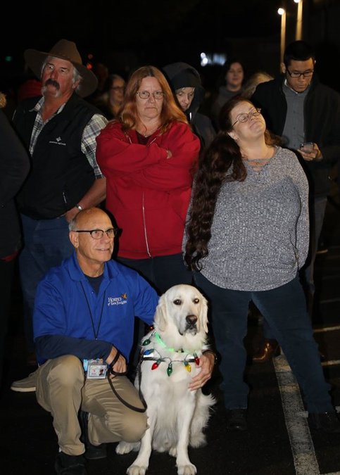 The loved ones of Wilson had the honors of turning on the large PG&E switch, sparking up the tree lights.