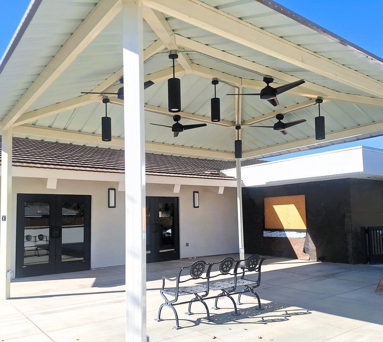 This includes the metal pergola shade structure and the concrete padding for the 1,300-square-foot outdoor seating area at the City of Ripon facility located at 433 S. Wilma Ave.