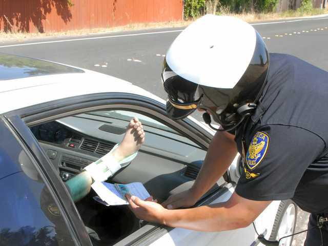 One of 22 drivers cited in a Manteca Police sting Monday morning for failing to stop for pedestrians at crosswalks had a medical reason for not being able to stop – his right foot was in a brace and his leg needed to be elevated.