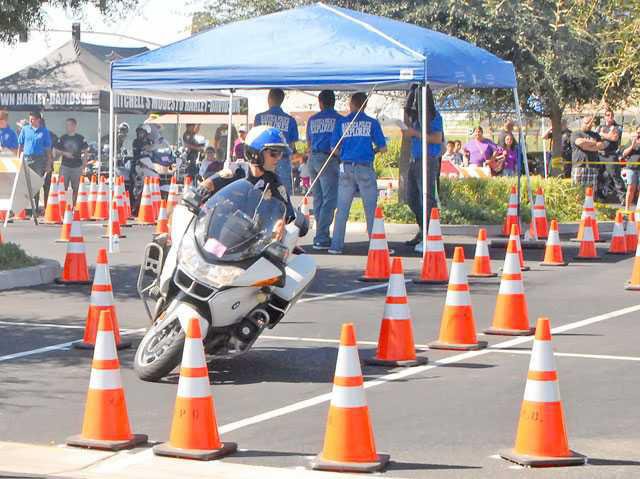 Police officers from Redding to Fresno participated in Saturday’s motorcycle competition at a cordoned-off parking lot at the Promenade Shops at Orchard Valley shopping center at Union Road and the Highway 120 Bypass.