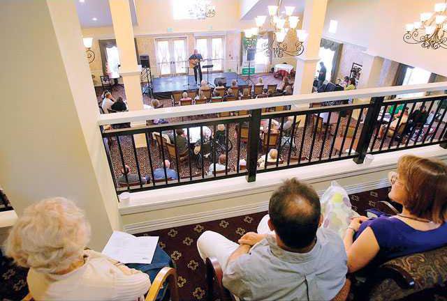 People watch from the second floor as Ed Smith performs “Uncle Willy” during the event dubbed “Seniors Got Talent” show.