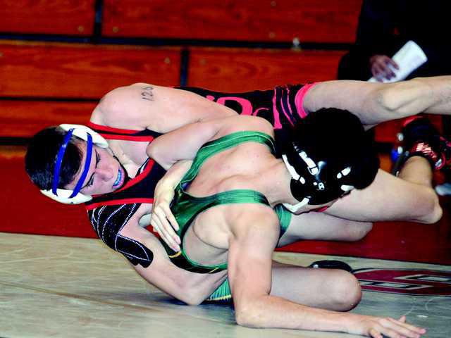 The Indians’ Diego Moreno (160) had beat Wyatt Amaral earlier this season, but on Saturday Moreno rolled to a second-round pin.