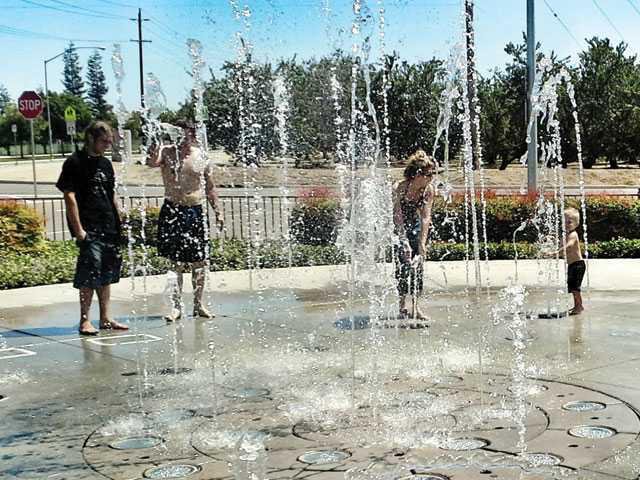 Drought or not, people of all ages kept cool on Monday by playing in the interactive water feature at the Mistlin Sports Park.